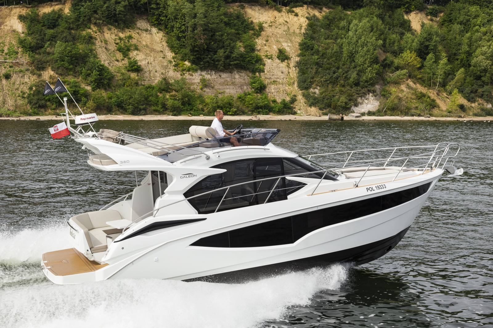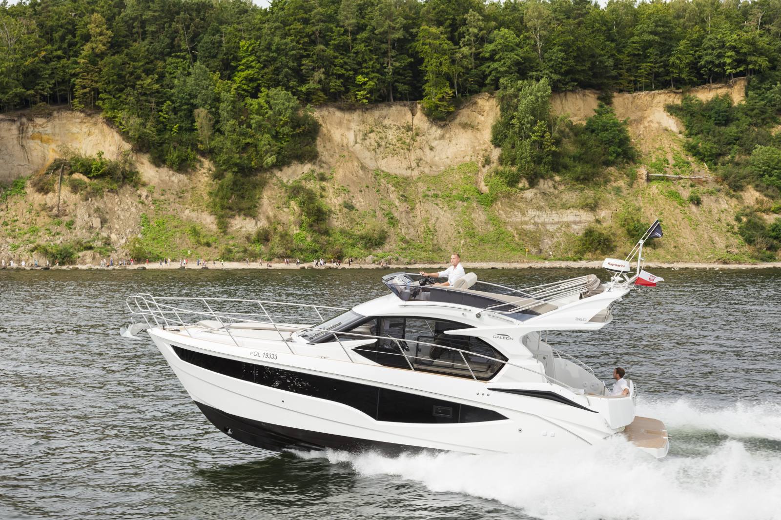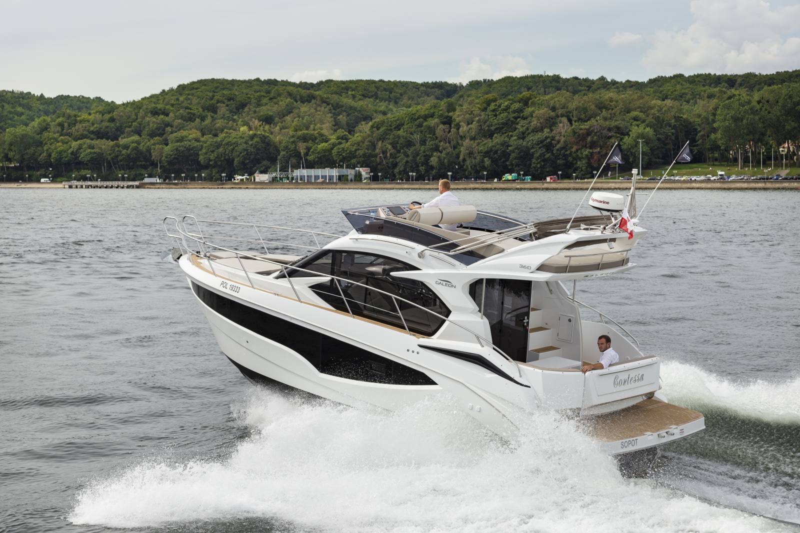 THE GALEON 360 FLY JOINS THE ACCLAIMED THIRD GENERATION FLYBRIDGE LINEUP TO BRING A SERIES OF INNOVATIONS TO THIS HIGHLY COMPETITIVE SEGMENT. EXPECT GREAT SPACE MANAGEMENT ON ALL THREE DECKS, COMPETITIVE PERFORMANCE AND A HIGH LEVEL OF FINISH OF THE CUSTOMIZABLE INTERIOR.