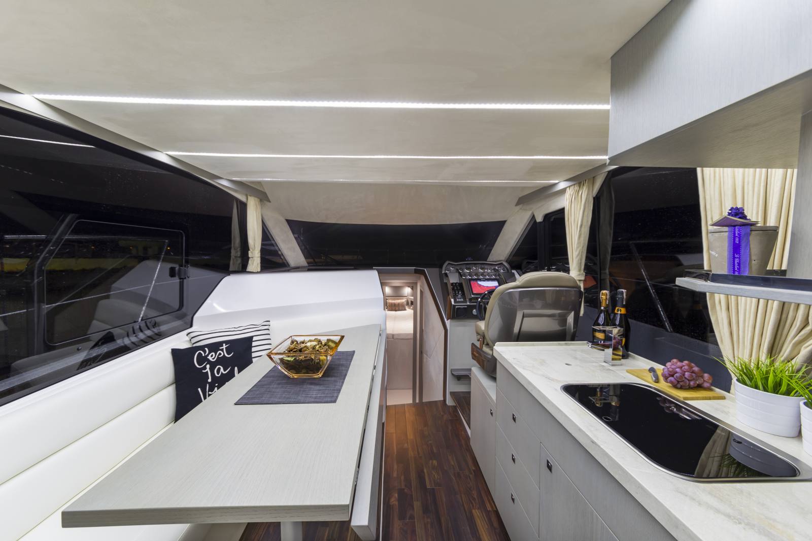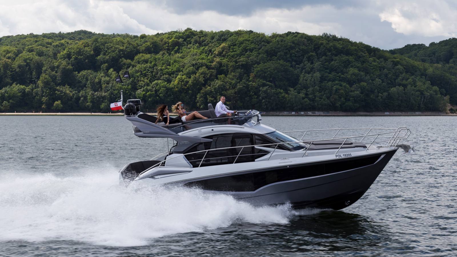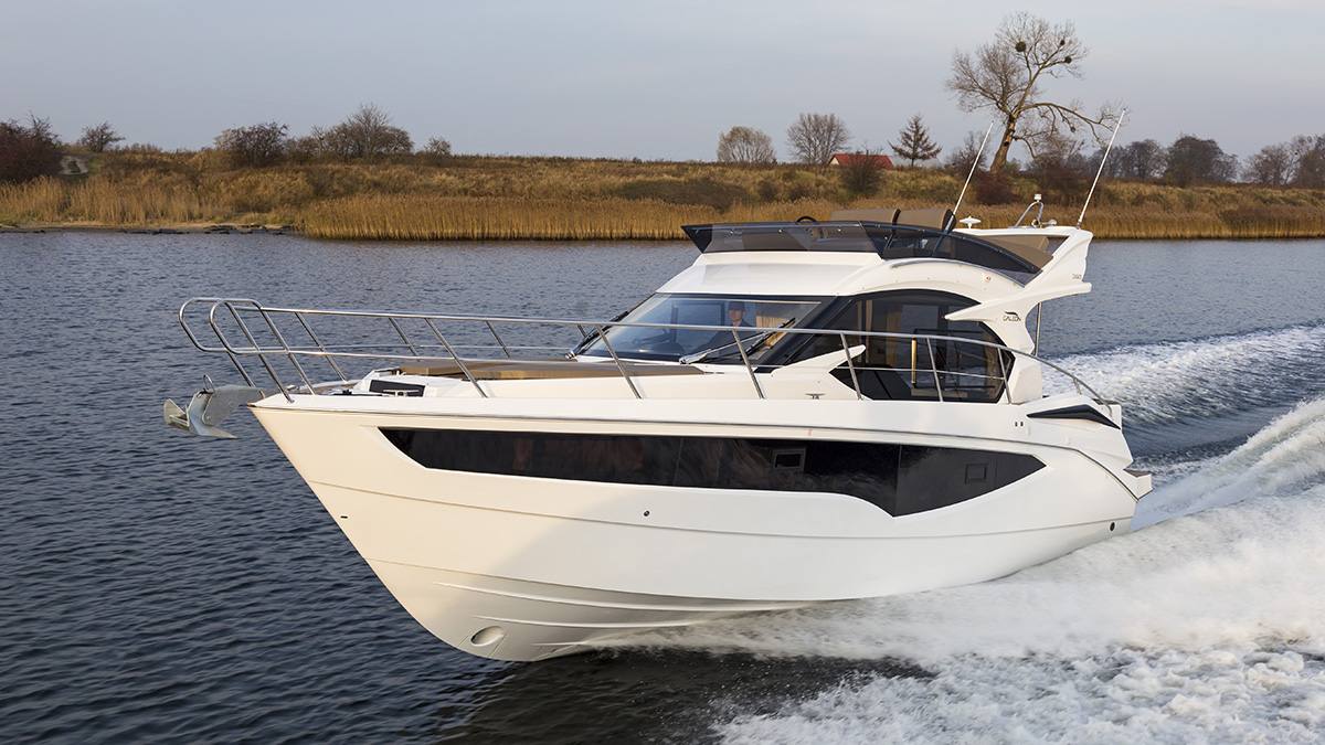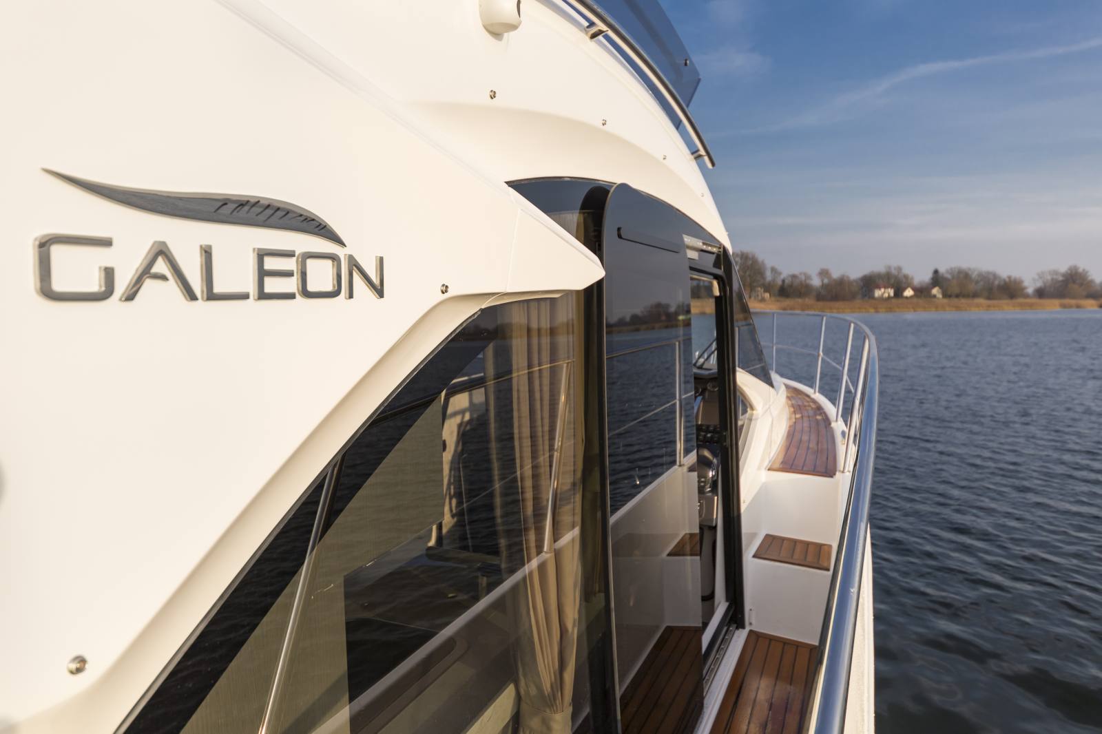 THE GALEON 360 FLY JOINS THE ACCLAIMED THIRD GENERATION FLYBRIDGE LINEUP TO BRING A SERIES OF INNOVATIONS TO THIS HIGHLY COMPETITIVE SEGMENT. EXPECT GREAT SPACE MANAGEMENT ON ALL THREE DECKS, COMPETITIVE PERFORMANCE AND A HIGH LEVEL OF FINISH OF THE CUSTOMIZABLE INTERIOR.